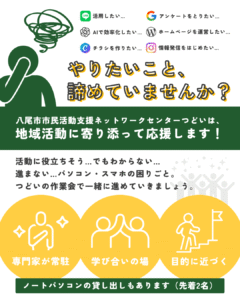 主催:八尾市市民活動支援ネットワークセンターつどい(運営:一般社団法人まちつくり隊)
