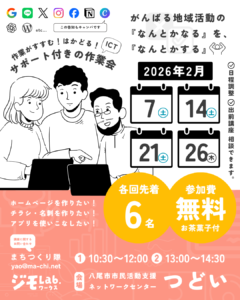 八尾市市民活動支援ネットワークセンターつどいのICT作業会は、どのような技術レベルの方でも、焦らずじっくり取り組めるような場づくりを心がけています。