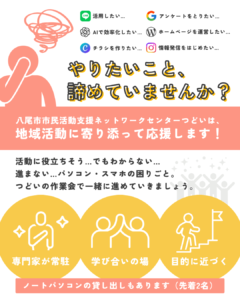 主催:八尾市市民活動支援ネットワークセンターつどい(運営:一般社団法人まちつくり隊)
